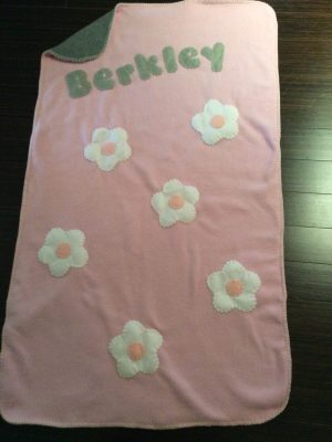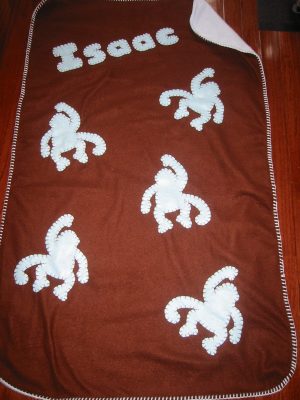 My Custom Fleece Blankets are my original collection, and although I started making them as baby gifts, I proudly make them for babies, children, teens and adults alike. They make fantastic bar and bat mitzvah gifts, and get well and housewarming gifts, as well. To order, please call or email me directly.